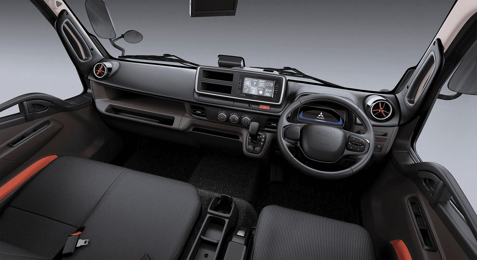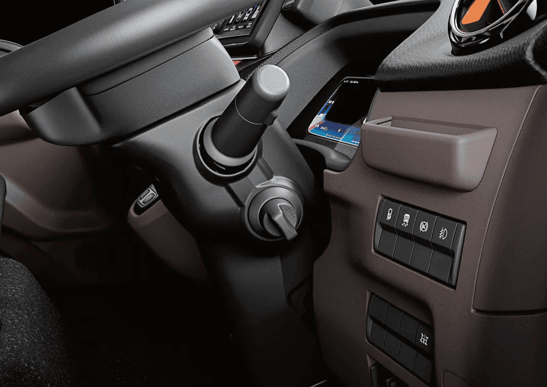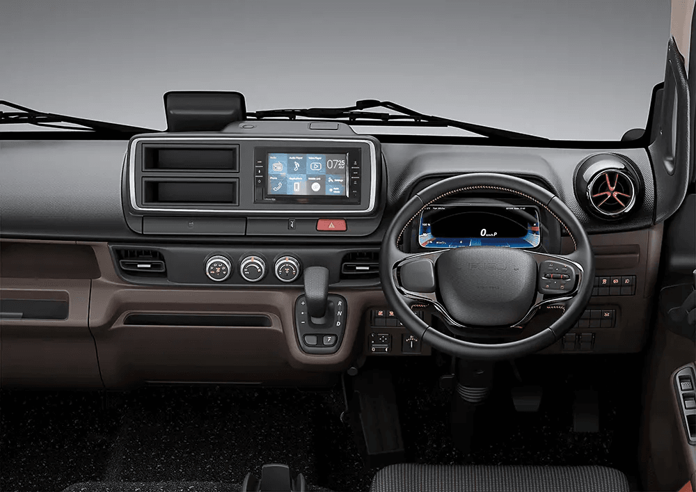 Workspace Digital & Ergonomis: Masuk ke dalam kabin eCanter seperti memasuki ruang kendali modern. Panel instrumen full-digital memberikan informasi real-time mengenai konsumsi energi, status baterai, dan efisiensi regenerasi energi saat pengereman.